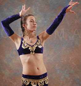 The thing was, bellydance was hard! I struggled to learn it, all the while thinking why can't I just be naturally good at this, I should be naturally good at this, it's my thing! But slowly, slowly, I got a little better and a little better. I mastered more complex movements. My muscular range increased. And eventually I got to perform with Luna's troupe at Cafe Bellie - and then I was invited to perform with them at the 2005 Beijing Cultural Festival. In, yeah, Beijing. I got the costume and everything. (Are you ready? There's a picture of me coming up. Age 16. In my purple costume. I was so excited about having the pictures taken, but when I got them I was so disappointed - I didn't look nearly as awesome as I thought I did.) I didn't go to China. I went to visit colleges instead. I kept doing Luna's weekly class. And then, in 2006, I moved to Massachusetts, and so did Donna Mejia.
